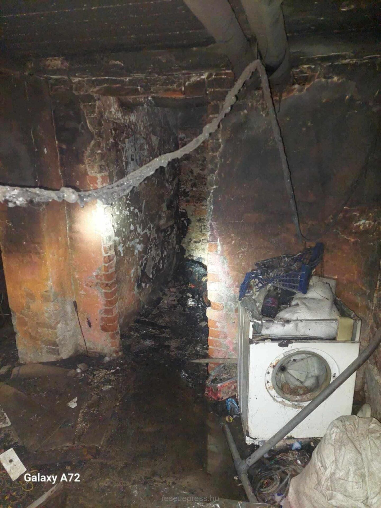 Helyszíni információk szerint a fenti cím pincéjében keletkezett tűz, viszont az oltási munkálatokat nagyban nehezítette a pincében felhalmozott bútorok, használati tárgyak és lomok. A tűzoltók a labirintus szerű és füsttel telített pincében egy víz sugárral a tűzfészkét megtalálták és a túzet megfékezték.