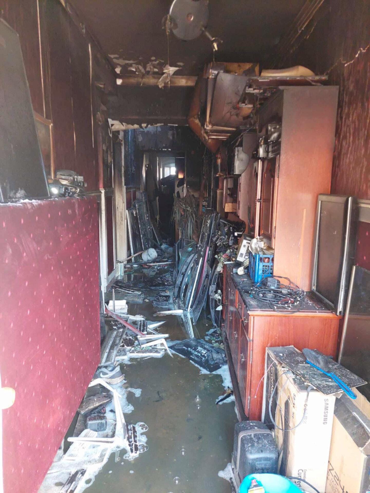A munkálatokat tovább nehezítette, hogy az épület minden helységében elektronika eszközök, többnyire bontott televíziók voltak legalább 1 m magasságban. Az később érkező egységek átvizsgálták a teljes épületet, de szerencsére senki sem tartózkodott az ingatlan területén, így személyi sérülés nem történt.